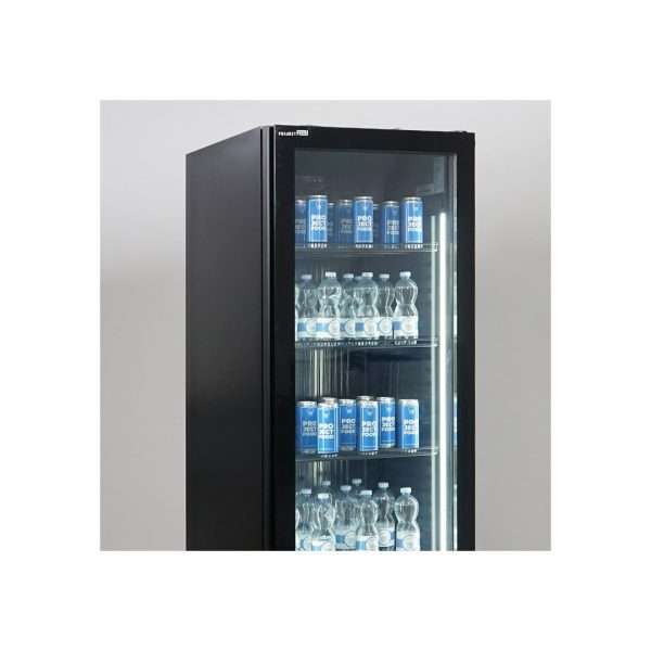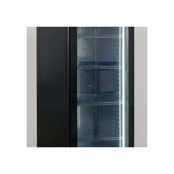 Vitrina refrigerada para bebidas de 380 lt premium negra con temperatura de 0°C a +10°C
