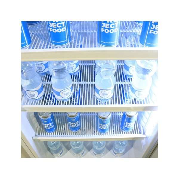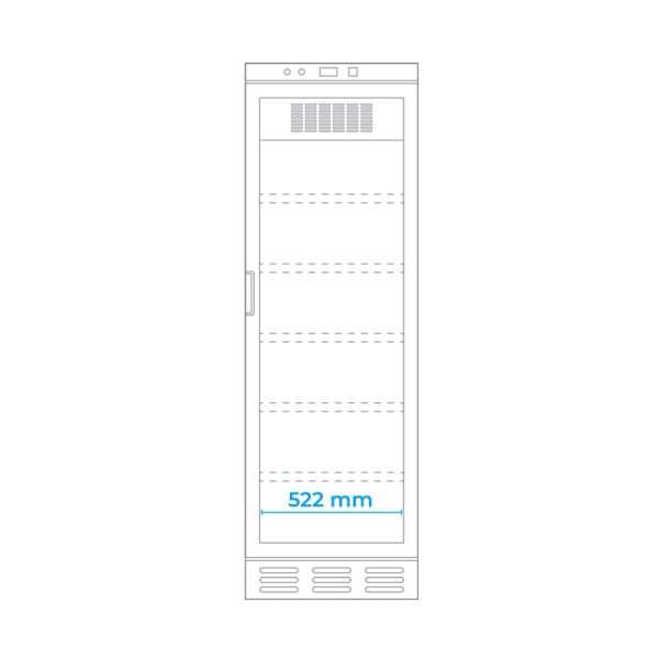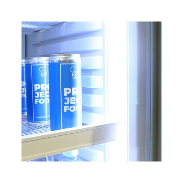 - Puerta batiente con cierre con llave: equipada con vidrio doble templado y marco de ABS, asegura una visibilidad perfecta de los productos y un excelente aislamiento térmico.