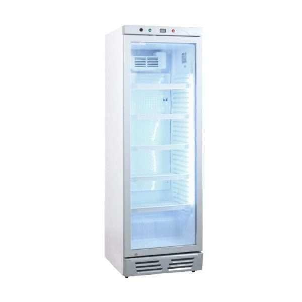 Vitrina refrigerada para bebidas de 382 lt premium blanca temperatura de 0°C a +10°C