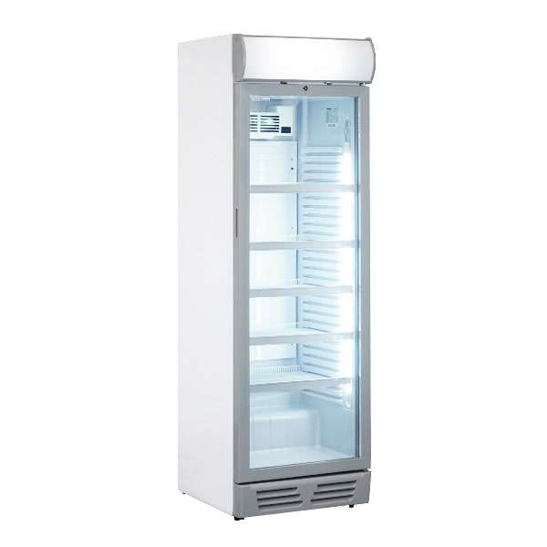 Frigorífico para bebidas plateado con puerta batiente de 450 lt y canopy iluminado – temperatura de 0°C a +10°C